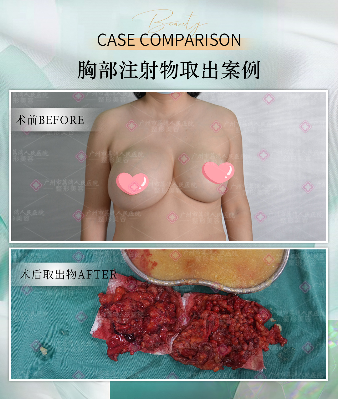对此,广州市奥美定修复技术研究院(原广州荔湾区人民医院)整形美容失败修复医师表示,不明注射物取出率很重要,爱美者务必选择有资质、实力和技术的正规公立医院,尽早将不明注射物取出来。切勿存有侥幸心理,长期留存注射物在体内。一旦发生癌变或感染,将会让爱美者后悔莫及。