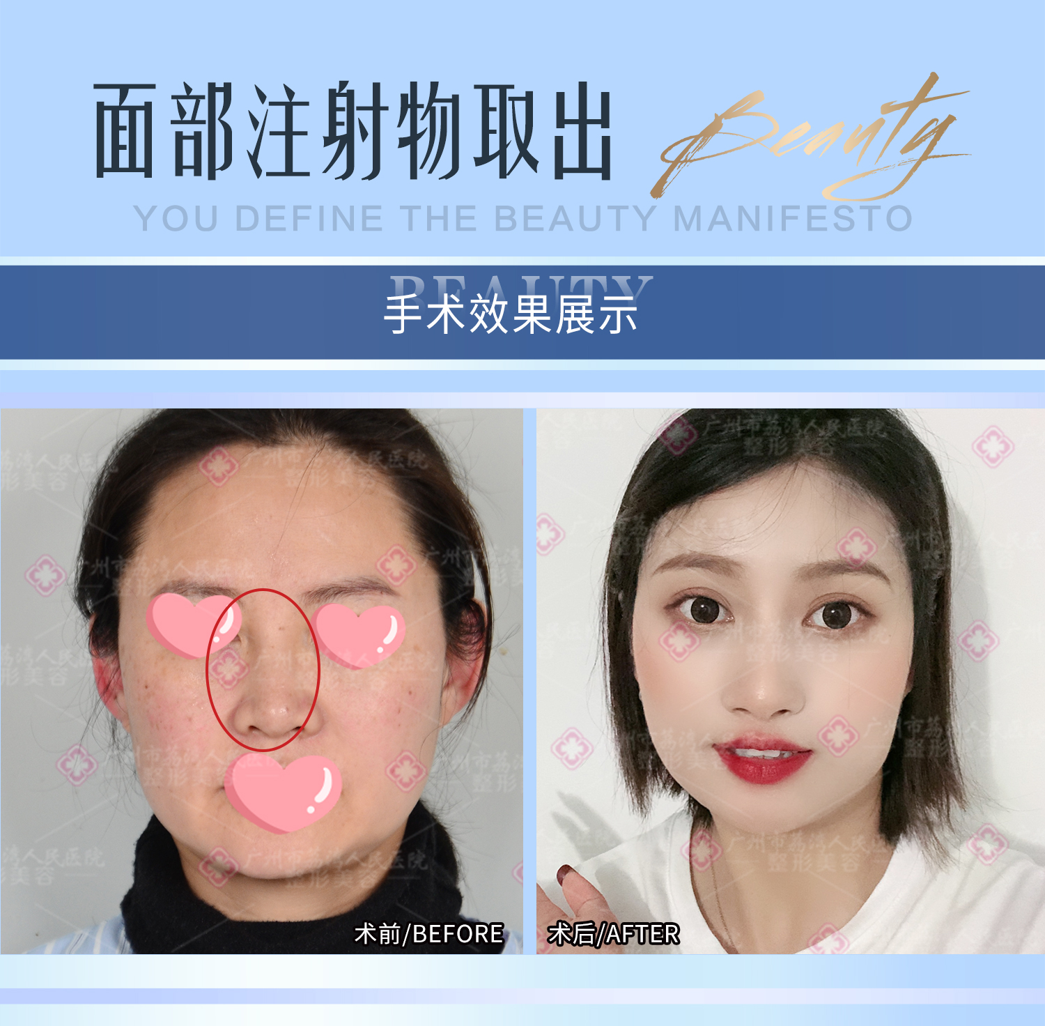 对此广州市奥美定修复技术研究院(原广州荔湾区人民医院)整形美容修复医生表示,因为各种注射物而出现肿胀位移能够取出,并且发现自身情况越早取出越好,倘若不及时的取出,注射物就会游离到身体的各个部位,甚至身体上形成多个肿块,不仅影响美观也危害到身体健康,还增加取出难度。