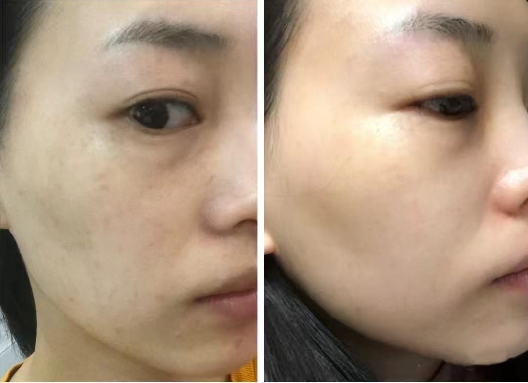可以明显的看到斑基本都没了,皮肤也紧致光滑了。