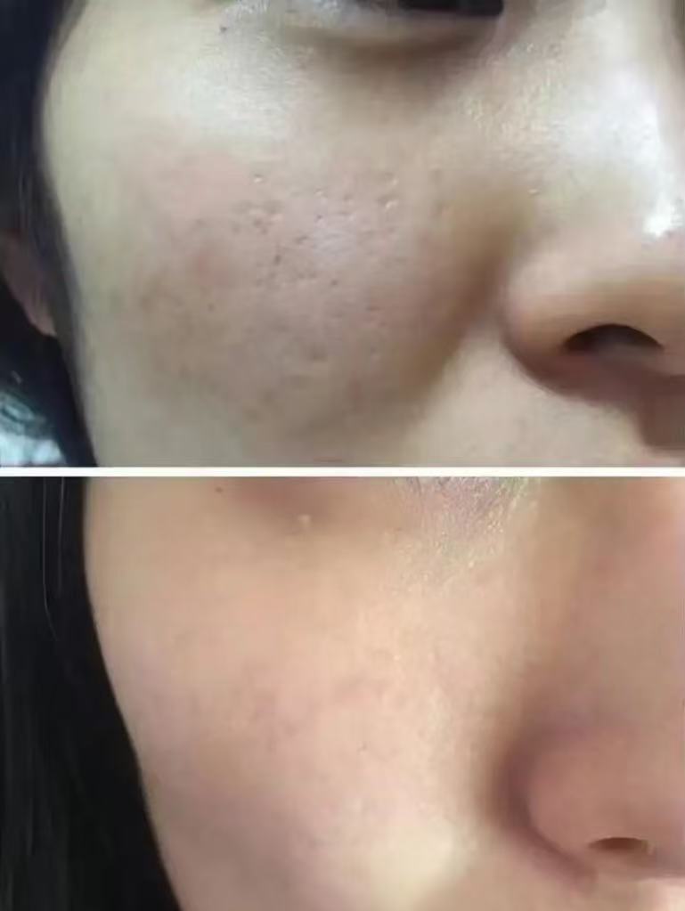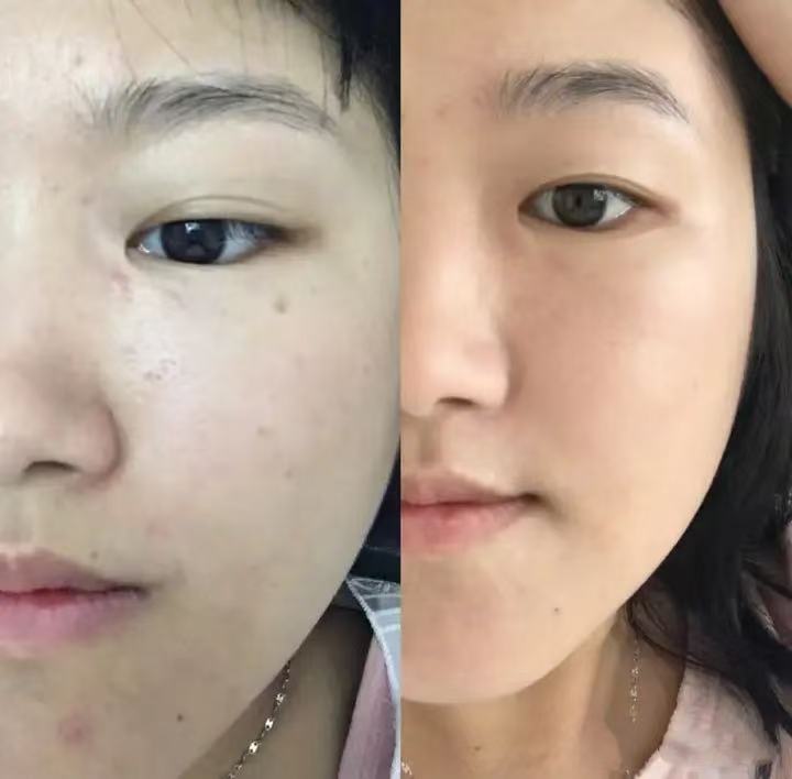 这是做了一个疗程之后的对比图,脸上的瘢痕基本不见了,肌肤也更光滑,紧致,效果还是比较明显的。
