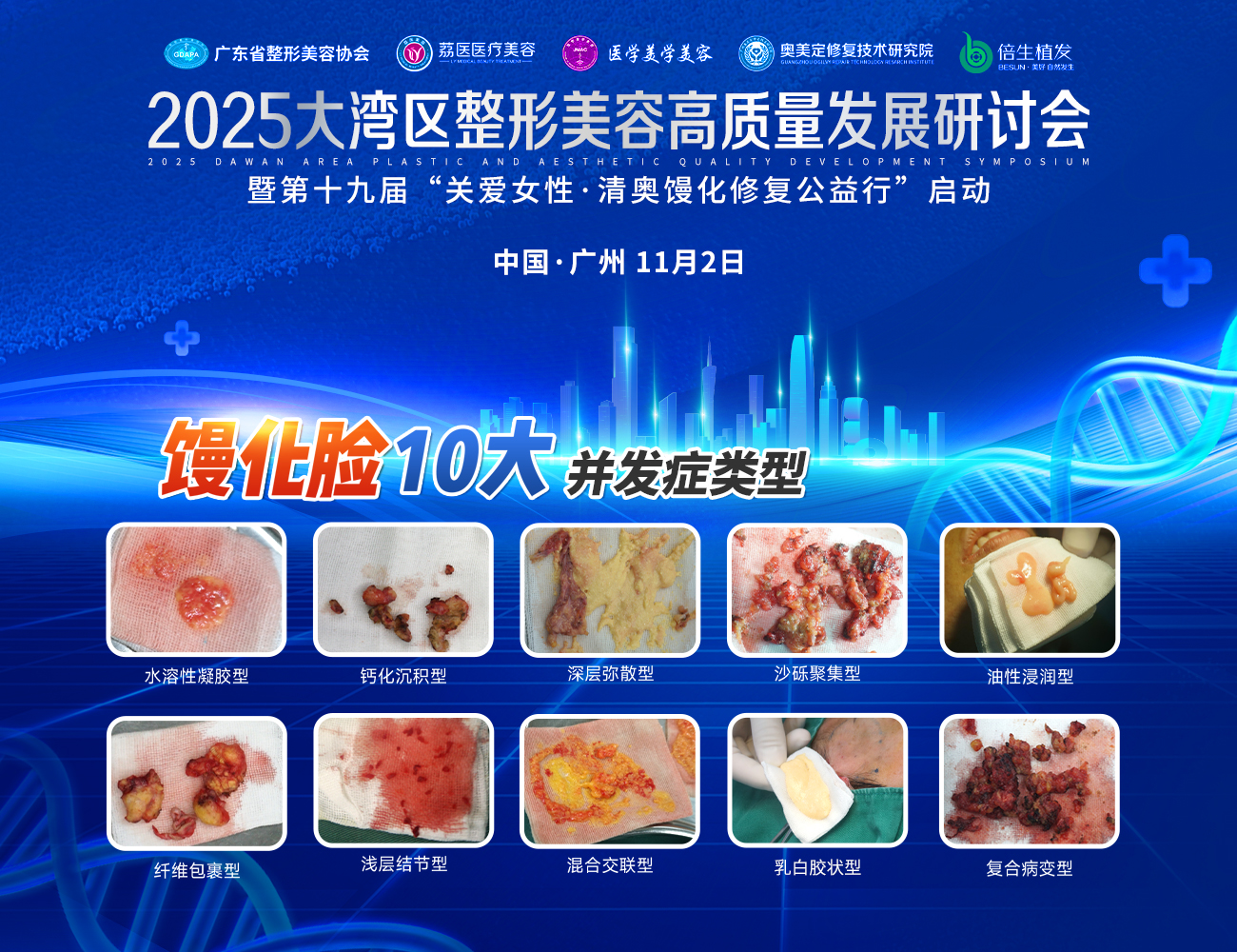 第十九届“关爱女性·清奥馒化公益行”2025大湾区整形美容高质量发展研讨会将于2025年11月2日在中国大酒店会议中心举行,本次活动以推动医美行业高质量发展为核心,聚焦技术规范、安全修复与多学科融合,汇聚大湾区顶尖专家,围绕“馒化脸”修复等前沿议题展开深入探讨。活动亮点包括:联合《医学美学美容》杂志发表学术论文、与百度合作设立“馒化脸”公益专栏、发布多项专利技术与《清奥馒化修复手册》、首次提出“馒化脸取出材料十大分型标准”与分级诊疗体系,并开展实况手术演示。同时,设立百万公益援助金,为受整形失败困扰者提供医疗支持与专家会诊,助力行业规范发展与人文关怀深度融合。