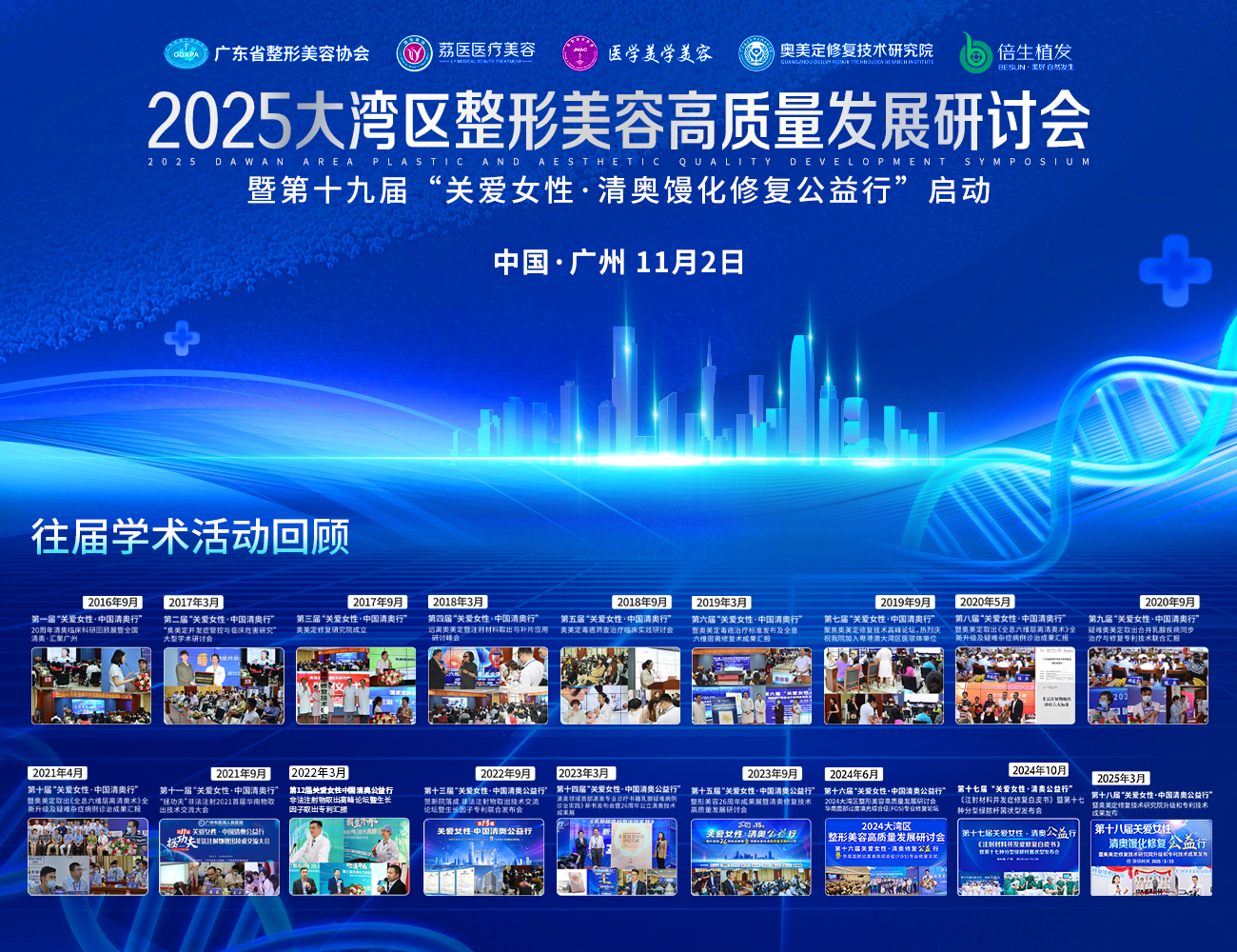 第十九届“关爱女性·清奥馒化公益行”2025大湾区整形美容高质量发展研讨会圆满落幕,本届大会以推动行业高质量发展为核心,汇聚顶尖专家,深度探讨了“馒化脸”修复等前沿议题。会议成果丰硕,亮点纷呈: