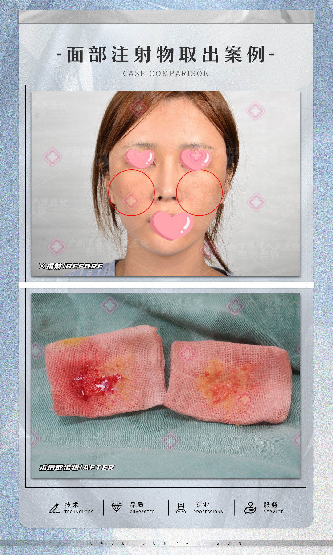 梁女士在网上调查之后,发现我院有不少非法注射物取出的案例,而且取过非法注射物的爱美者都已经恢复日常的健康生活了,这让梁女士感受到了希望,所以她决定前来我院就医。